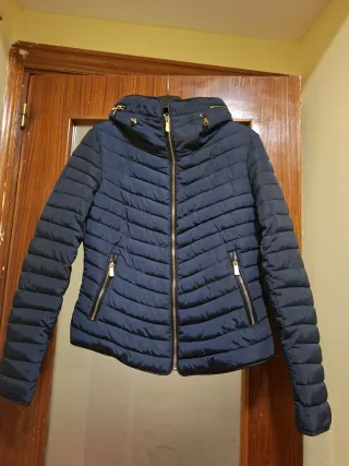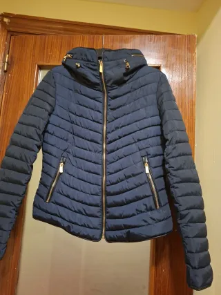 Cazadora acolchada brillante con capucha. - Cierre de cremallera frontal. - Bolsillos laterales con cremallera. - Puños elásticos. Tengo la foto del ticket si la quereis se pasa por privado