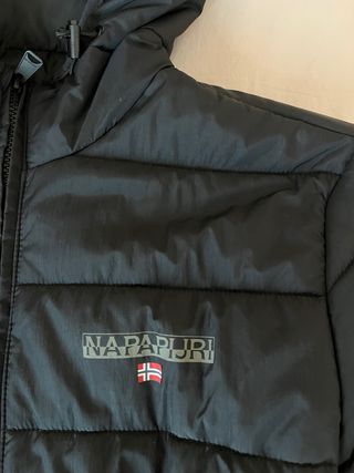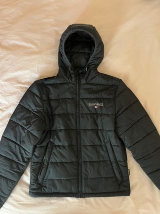 Chaqueta acolchada Napapijri con un diseño moderno y funcional. Perfecta para el día a día. La talla es S aunque se acerca más a una M - Capucha ajustable con cordones. - Cierre frontal con cremallera. - Bolsillos laterales con cremallera. - Logo de la marca en el pecho.