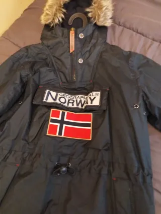 Chaqueta de estilo anorak con capucha y bolsillo frontal. - Cierre de cremallera parcial. - Forro interior de tejido polar. - Parche con la bandera de Noruega en el pecho. - Cremalleras laterales en el bajo.