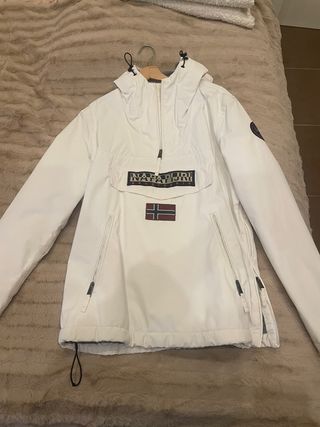 Chaqueta estilo anorak de la marca Napapijri. - Color blanco. - Diseño unisex. - Capucha ajustable. - Bolsillo frontal con cremallera y logo. - Parche con la bandera de Noruega.