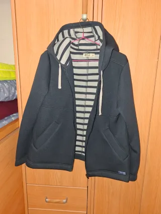 Chaqueta con capucha de neopreno. - Cierre de cremallera. - Dos bolsillos frontales. - Diseño moderno y cómodo.