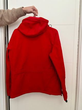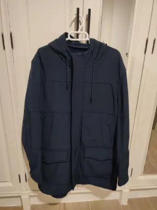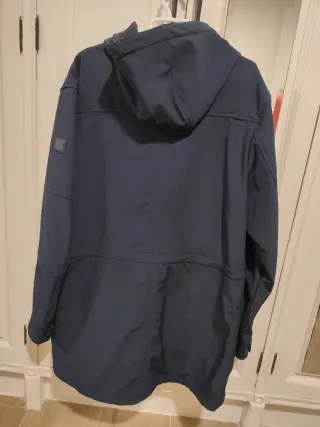 Chaqueta de la marca Alvaro Moreno en color azul. Por fuera tacto de neopreno, y por dentro polar. - Diseño con capucha. - Cierre de cremallera. - Bolsillos frontales con solapa. - Cordones ajustables en la capucha. Como nuevo, NO USADO