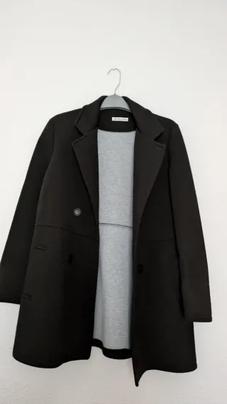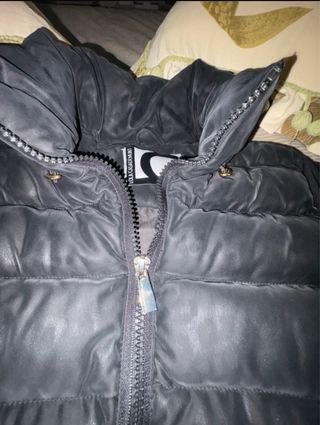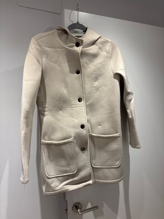 Chaqueta de abrigo con capucha. Perfecto estado. Feeling muy cómodo. - Cierre de cremallera frontal. - Bolsillos laterales con cremallera. - Acabado estilo elástico-neopreno. - Bolsillo oculto con cremallera en manga.