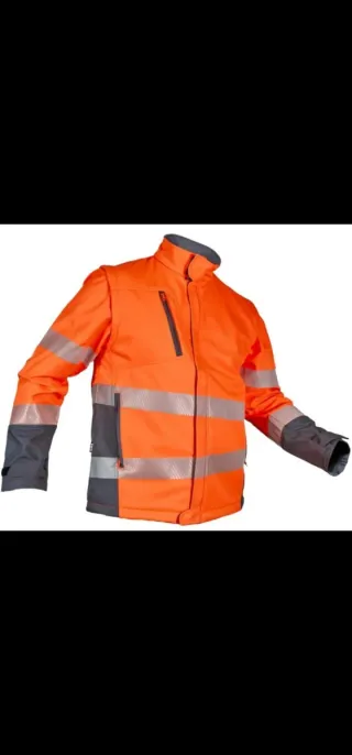 Chaqueta KINGSMANN tipc NEOPRENO, Polar Softshell, Alta Visibilidad Chaqueta con cierre de cremallera de nulon Cuello alto, Puñc con ajuste de velcro Regular Fit. Jn bolsillo en pecho con cremallera y dos bolsillos bajos laterales cor cremallera Cortavientos de doble capa en el interior. El tejido softshell ofrece resistencia al agua, puede mantenerte seco con precipitaciones leves y moderadas. Su revestimiento se hincha y desprende las gotas, la cubierta ríqida evita la humedad - NUEVO - -- 1 Chaqueta -- • Precio Mercado 70 Eur ●