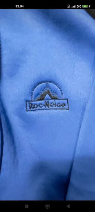 Chaqueta de la marca Rocneige con un diseño moderno. - Combinación de colores azul y negro. - Cuello alto con cremallera. - Mangas largas.
