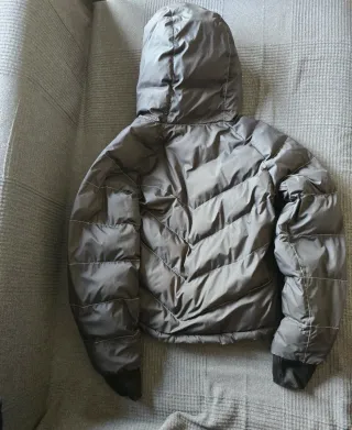 Chaqueta Nike de color gris con detalles reflectantes y abriga demasiado precio negociable - Diseño moderno y funcional - Cremallera frontal y velcros - Puños ajustables.