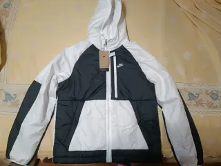 Vendo chaqueta Nike para hombre, totalmente nueva y sin estrenar. Modelo tipo chaqueta acolchada ligera (perfecta entre abrigo y cortavientos): • Aislante y muy ligera • Ideal para otoño, invierno suave o días fríos sin lluvia intensa • Diseño exclusivo en color blanco con efecto marmolado • Capucha ajustada • Cremallera completa • Bolsillos laterales con cierre • Logo Nike bordado Incluye cremallera transparente con efecto flotante, un detalle único que destaca mucho y no se ve en otros modelos Motivo de venta: No me queda bien / no lo uso. Lista para enviar en el momento Precio negociable