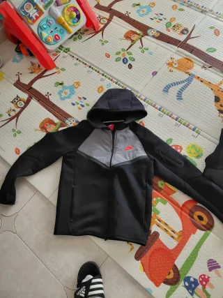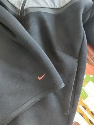 Conjunto deportivo Nike Tech. - Chaqueta con capucha y cremallera completa. - Pantalón a juego. - Diseño en color negro y gris. Talla XL ajustada (talla L normal).
