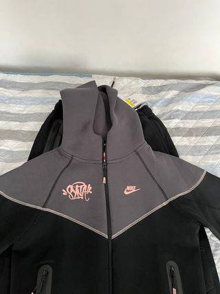 Conjunto de chándal Nike Tech x Syna World.Lo vendo pars recuperar el dinero porque lo compre y me esta chico precio negociable - Chaqueta con cremallera completa. - Pantalones con cintura elástica. - Diseño en color negro y gris.