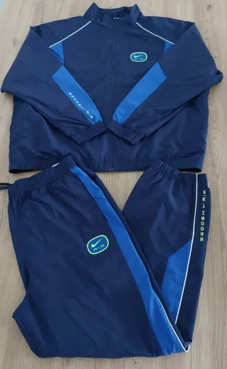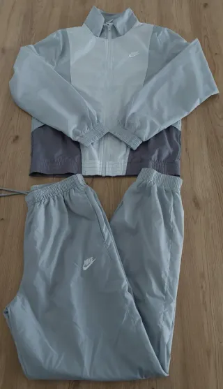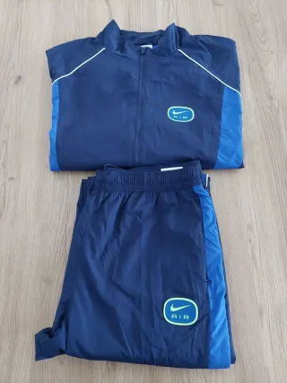 Conjunto deportivo de dos piezas. - Chaqueta con cremallera. - Pantalón con cordón - Logos de la marca NIKE visibles. Es talla L grande , si tienes una XL también te quedará bien La chaqueta tiene el elástico de la cintura un poco vencido.