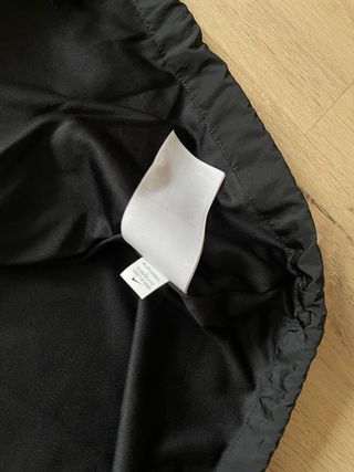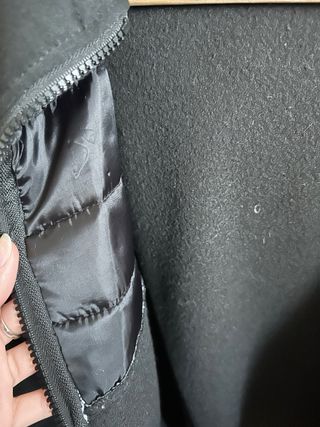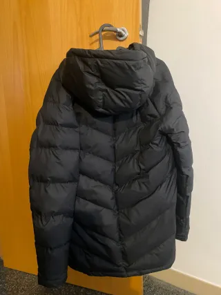 Chaqueta acolchada negra con capucha. - Talla: Niño/a L (147–158 cm) 12–14 años aprox. - Diseño con cremallera frontal. - Bolsillos laterales. - Logo de la marca en el pecho. - tiene algunas imperfecciones como la de la segunda imagen pero son poco visibles y en el bolsillo tiene una imperfeccion pero no se ve