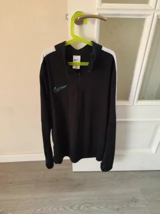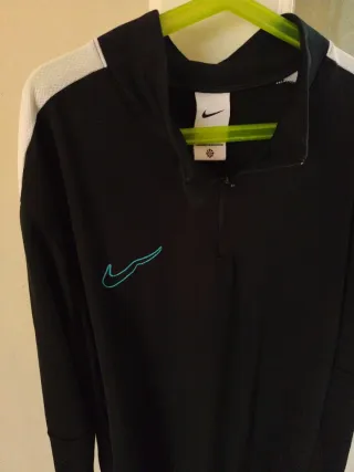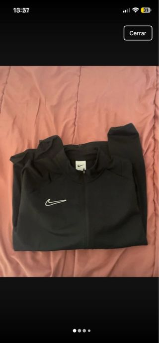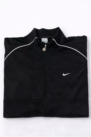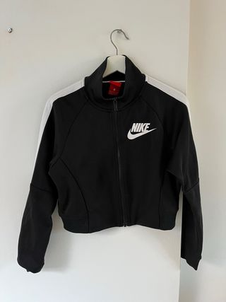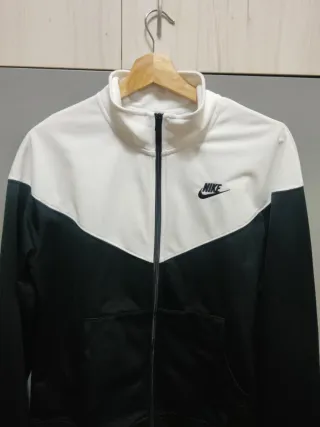 Chaqueta deportiva Nike en color negro. - Logo de Nike bordado en el pecho. - Ribetes blancos en las mangas. - Cremallera frontal completa. - Bolsillos laterales con cremallera. Tiene uso pero esta en perfecto estado Cualquier duda escribeme😉