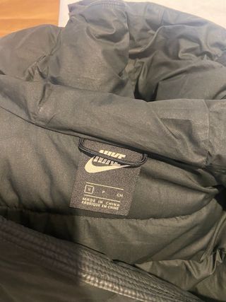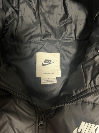 Chaqueta acolchada de la marca Nike en color negro. Diseño moderno y cálido. - Cierre completo con cremallera. - Bolsillos laterales con cremallera. ES LA S PERO SERVIRIA PARA UNA M TAMBIEN ES GRANDE