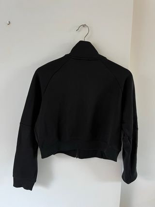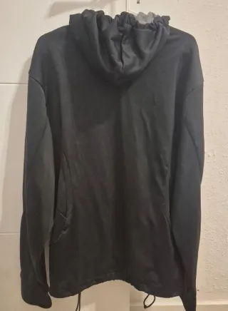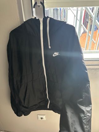 Chaqueta con capucha y cremallera de la marca Nike. En la etiqueta indica que es una talla L, pero da menos talla, siendo una S. - Logo de Nike bordado en el pecho. - Bolsillos delanteros. - Puños y cintura elásticos.