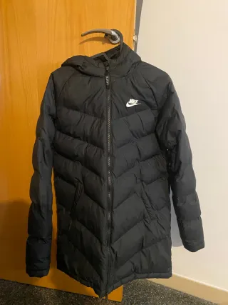 Chaqueta larga acolchada con capucha. - Diseño con cremallera frontal. - Logo de Nike en el pecho. - El tallaje es pequeño. Podría ser L
