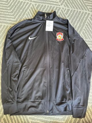 Chaqueta deportiva oficial del FC Barcelona. Sin estrenar y con las etiquetas. Temporada 2011-2012. - Diseño en color negro con detalles en dorado. - Logo de Nike bordado. - Escudo del FC Barcelona y Qatar Foundation en el pecho. - Cremallera frontal completa. - Bolsillos laterales con cremallera. - Tecnología Dri-FIT.
