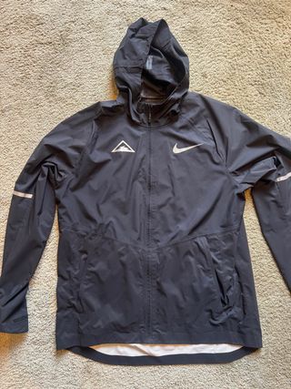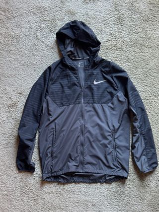 Chaqueta deportiva Nike para running. - Diseño con capucha. - Cierre de cremallera frontal. - Detalles reflectantes en mangas. - Bolsillos laterales.