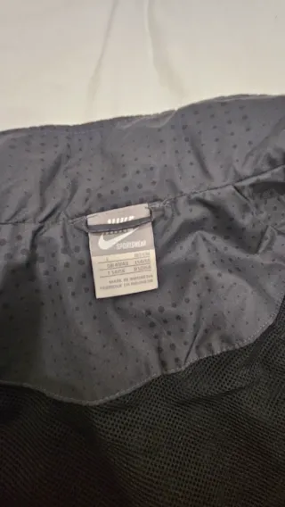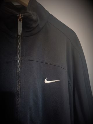 Chaqueta deportiva con cremallera frontal y cuello alto. - Logo de Nike bordado en el pecho. - Diseño con costuras marcadas en la parte delantera. Talla: XXL 100% polyester Muy buen estado!
