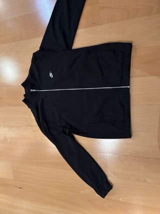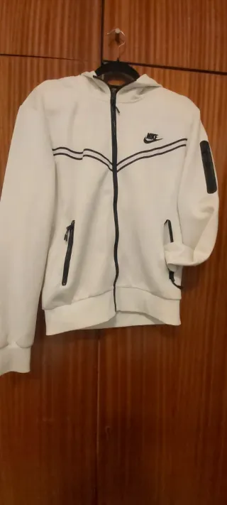 Chaqueta deportiva Nike Tech Fleece en color negro. Diseño moderno y cómodo. La vendo porque me va pequeña. - Cremallera completa. - Capucha. - Bolsillos laterales.