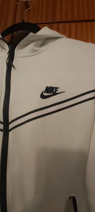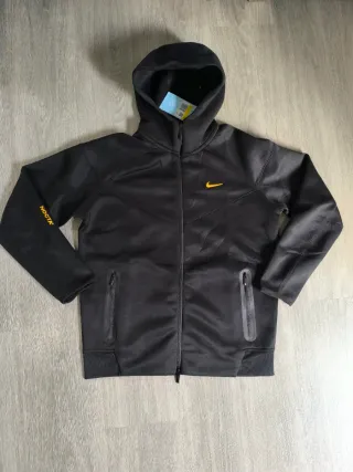 Sudadera nike tech con cremallera completa y capucha. - Diseño bicolor en negro y gris. - Bolsillos frontales con cremallera. - Logo de Nike bordado en el pecho. poco uso