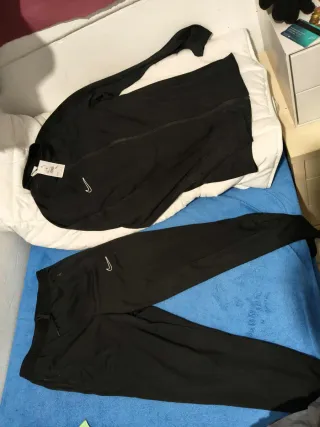 Conjunto deportivo completo de dos piezas. - Chaqueta con capucha y cremallera completa. - Pantalón con cintura elástica. - Diseño con ribetes blancos. - Logo de Nike en la chaqueta. -Si eres bastante alto los pantalones te quedarán cortos.