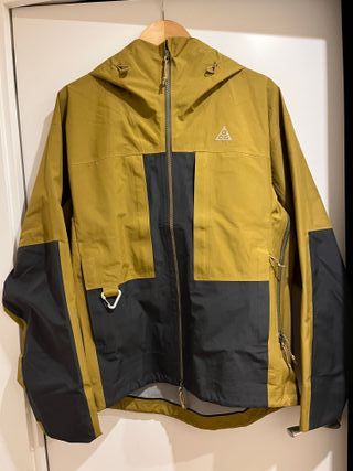 Chaqueta Nike ACG GORE-TEX nueva a estrenar, sin uso ni defectos. Modelo y color totalmente agotados y descatalogados, muy difícil de encontrar incluso en reventa. Ref. CV0634-216 | Beige dorado / Negro Membrana GORE-TEX impermeable y transpirable, construcción premium y diseño técnico ACG. Talla S hombre (ajuste holgado, sirve M). Capucha ajustable, ventilación en axilas, bolsillos con cremallera y bolsillo interior. Fabricada en 100% poliéster con fibras recicladas. Precio negociable dentro de márgenes razonables.