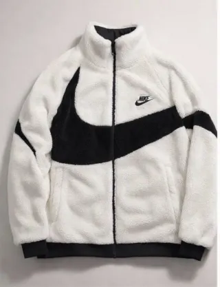 Chaqueta reversible de borreguito con un diseño llamativo. Disponibles 2 M - Exterior blanco con gran logo Swoosh negro. - Interior negro. - Cuello alto y cierre de cremallera. - Puños y bajo elásticos. - Disponibles 2 talla M