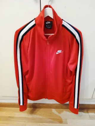Chándal completo en color rojo y negro, incluye chaqueta con cremallera y capucha y pantalón largo. Talla M. Tejido cómodo y calentito, ideal para uso diario o deportivo. El chándal lleva etiqueta Nike, pero no puedo garantizar que sea original, por eso se vende como chándal deportivo sin certificar autenticidad. Estado: bueno, sin roturas. Se vende el conjunto completo. 📍 Precio negociable 📩 Cualquier duda, escríbeme sin problema