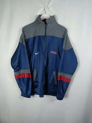 Chaqueta deportiva vintage de los años 90. - Diseño con paneles en color rojo, azul marino y blanco. - Logo de Nike bordado en el pecho. - Cremallera frontal completa. - Bolsillos laterales con cremallera.