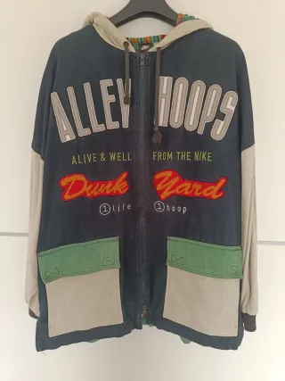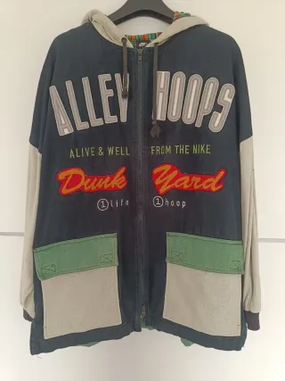 Preciosa y muy rara chaqueta Nike con capucha 1990s en perfectas condiciones. Ningún defecto. Talla M (viste oversize) Disponible para más fotos y detalles. Envío rápido - Diseño Alley Hoops con parches. - Bolsillos frontales con solapa. - Mangas de diferente textura. - Cierre de cremallera. #nike #vintage #90s