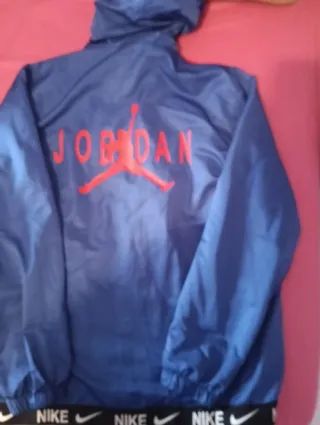 Chaqueta deportiva con un diseño llamativo. - Logo de Jordan en la espalda. - Banda con logo de Nike en la cintura.