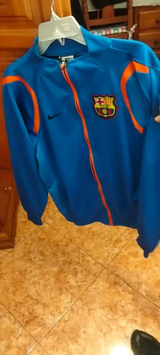 Chaqueta deportiva del FC Barcelona. Precio Negociable - Diseño con detalles en naranja. - Logo del club bordado en el pecho. - Cremallera frontal.