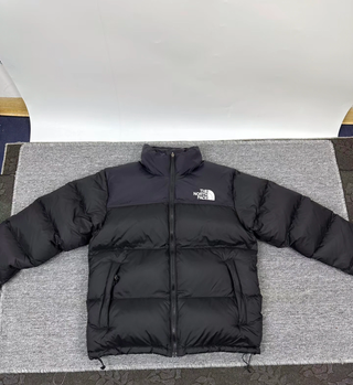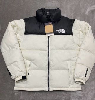 Chaqueta de la marca The North Face con un diseño bicolor. - Parte superior negra. - Parte inferior blanca.