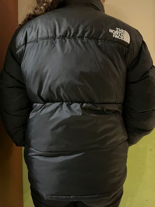 Chaqueta acolchada The North Face en color negro. Diseño ligero y cálido. Estado: Muy cuidado, sin roces ni enganches. El logo bordado está en perfecto estado. Talla: S Color: Negro mate. Extras: Cuenta con un bolsillo técnico con cremallera en la manga izquierda y capucha integrada para mayor protección. Autenticidad: Producto original fabricado en Jordania. Cremalleras funcionando suavemente. Lo compré por 100€.