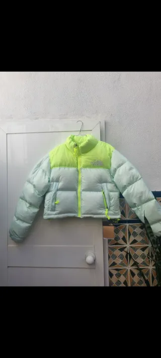 Chaqueta acolchada The North Face con un diseño bicolor llamativo. - Parte superior en color amarillo neón. - Parte inferior en color verde menta. - Cremallera frontal. - Bolsillos laterales con cremallera. - Nueva con etiqueta