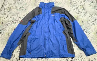 Chaqueta de la marca The North Face en tonos azules y grises. Diseño moderno y funcional. Dos partes el forro interior y el chubasquero cortavientos que se pueden llevar unidas o separada. Algún belcro está un poco despegado la cazadora tiene tiempo pero está muy bien conservada - Cierre frontal con cremallera. - Bolsillos laterales. - Capucha ajustable. - Puños con velcro.