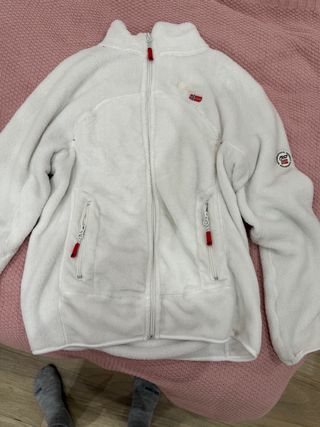 Chaqueta de tejido polar suave y cálido. - Cierre completo con cremallera. - Dos bolsillos frontales con cremallera. - Detalle de logo en el pecho y manga.