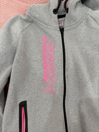 Chaqueta con capucha y cremallera frontal. Presenta un diseño moderno y funcional. - Bolsillos laterales con cremallera. - Detalle de logo de la bandera de Noruega en el pecho. - Cordones ajustables en la capucha.