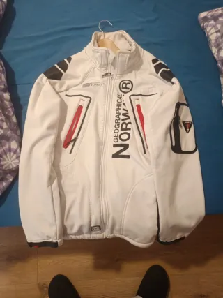 Chaqueta de Geographical Norway en color blanco. Diseño moderno y funcional. - Parche frontal con logo. - Bandera de Noruega en el pecho. - Cremallera frontal parcial. - Bolsillos laterales.
