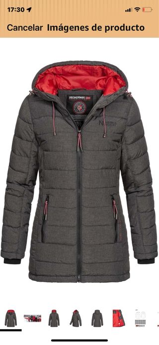 Abrigo mujer Geographical Norway en color gris, completamente nuevo. Usado en un viaje y nunca mas Talla XXL (42 hasta 44). Pecho: 58 cm. Longitud: 79 cm. TALLA PEQUEÑO Chaqueta de invierno acolchada, funcional y de alta calidad de Geographical Norway Impermeable, cortavientos, transpirable. Cremalleras con logotipo. Mantiene el calor y protege contra el viento y el frío. Capucha con cordón y tope para días fríos y lluviosos. Logotipo en la parte superior del braz Puños interiores en los puños como tope para el frío. 2 bolsillos laterales con cremallera. 2 bolsillos interiores con cierre