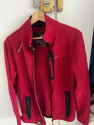 Chaqueta Geographical Norway en color rojo, ideal para el frío. - Cierre de cremallera. - Bolsillos con cremallera. - Cuello alto.