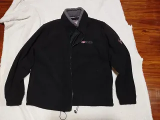 Chaqueta de la marca Norway en tonos negro y gris. Diseño moderno y funcional. - Capucha integrada. - Cremalleras frontales y en bolsillos. - Detalles reflectantes en mangas y frontal. - Parches decorativos en el pecho. Precio negociable