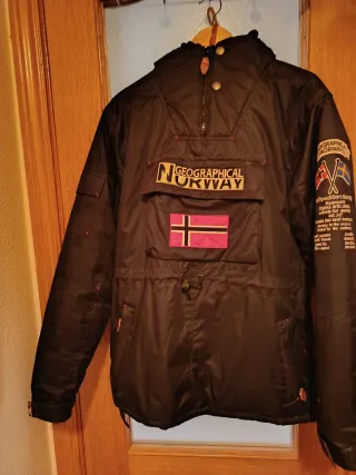 🧥 Abrigo Geographical Norway original – Muy cálido – Talla XL Vendo abrigo Geographical Norway en color negro, estilo anorak polar de invierno, perfecto para temperaturas frías. Diseño deportivo con logo grande de la marca y bandera de Noruega en el pecho, muy característico de la marca 🇳🇴 ✨ Características -Marca: Geographical Norway -Talla: XL (US/EUR XL – UK 44) -Color: Negro con detalles rojos -Capucha con pelo sintético -Interior acolchado muy cálido -Bolsillos frontales y laterales -Estilo outdoor / montaña / streetwear 📏 Estado Muy buen estado, poco uso. #GeographicalNorway #AbrigoInvierno #ChaquetaHombre #AbrigoXL