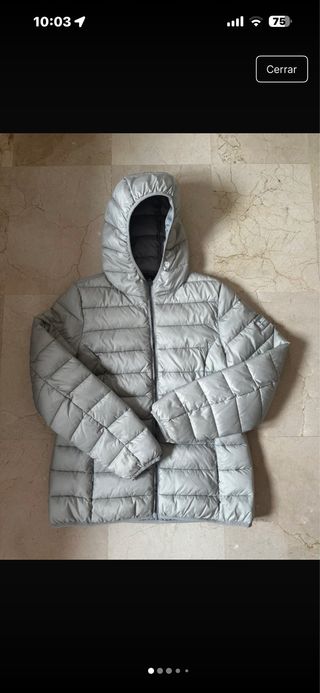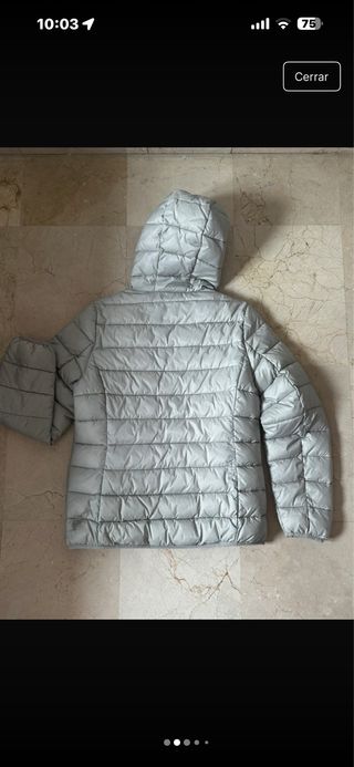 Vendo esta chaqueta acolchada (tipo puffer) en un precioso color gris plateado con acabado satinado. Es de la marca Norway Nautical School, conocida por su estilo deportivo y resistente. • Estado: Muy bueno. Bien cuidada. Importante: Tiene una "mancha" en la parte de atrás abajo izquierda. Es de un roce. • Talla: XL (talla real, queda muy cómoda). • Detalles: Capucha integrada. • Interior con diseño de estrellas negras muy original. • Parche de la marca en la manga. • Cierre de cremallera frontal completo. • Bolsillos laterales funcionales. • Material: Exterior 100% Poliamida, interior 100% Poliéster. Es muy ligera pero abriga bien