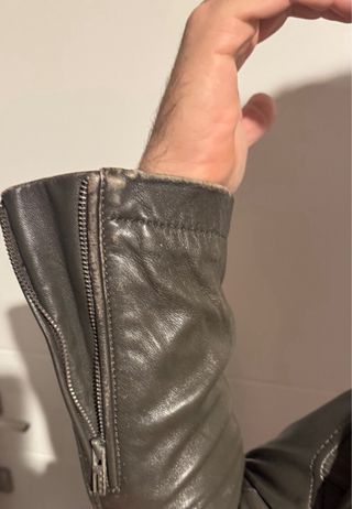 CHAQUETA CUERO CON CREMALLERAS. ZARA XXL.
