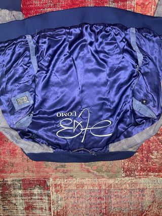 Chaqueta bomber EFE de cuero azul y gris