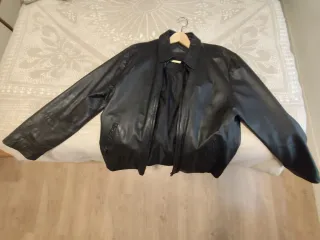 Chaqueta bomber de cuero, hecha con piel de ovino. Está en perfectas condiciones. Las cremalleras funcionan a la perfección. Se adjuntan las medidas para que su compra sea más cómoda y segura
