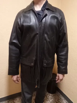 Escucho ofertas. Chaqueta de cuero auténtico en color negro. Se encuentra en buen estado. - Material: Cuero genuino (no polipiel). - Talla: XL (equivalente a 46/56). - El forro de los bolsillos está descosido, pero al ser piel los bolsillos son totalmente funcionales.