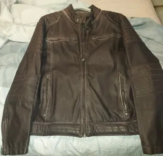 Chaqueta de cuero con un diseño moderno y elegante.marca talla 50 precio negociable - Material: Cuero genuino. - Color: Marrón. - Cierre de cremallera. - Bolsillos frontales con cremallera y solapa. - Puños y cintura elásticos.