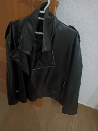 Chaqueta 100% cuero, usada 2 veces . Precio original 220€ Hombros 40 cm Manga desde el hombro 60 cm Axilas 44 cm Largo desde la axila 28 cm Largo desde el hombro 52 cm - Diseño tipo biker. - Cierre de cremallera frontal. - Bolsillos con cremallera e interiores